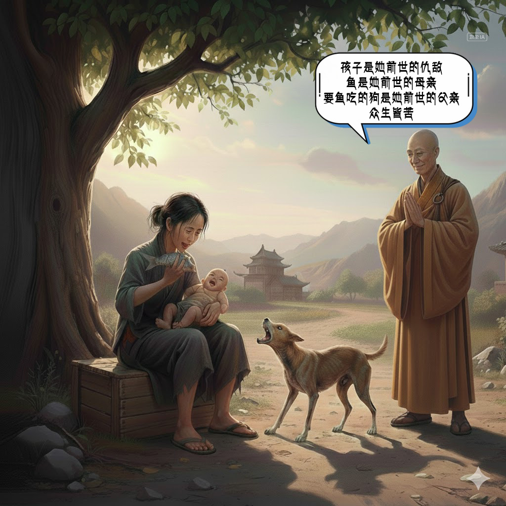 《世俗情爱的短浅,颠倒与可怜–大日如来王尊佛》一妇人怀抱孩子吃鱼,狗过来抢鱼骨,妇人踢狗,用鱼骨头打狗,狗叼走鱼骨吃食。高僧旁边看到笑了,旁人问有何可笑?高僧答:那孩子前世是那妇人的仇敌,鱼是她前世父亲,狗是她前世母亲,狗抢走骨头,依旧像前世那样眷恋着骨头。只有放下凡尘中我们的贪爱与嗔恨的执着,才懂得真情真爱。————大日如来王尊佛上师语音开示 http://www.drmwss.cn/wp-content/uploads/2023/05/世俗情爱的短浅,颠倒与可怜.mp3 文章导航宝藏的距离人应当只走一条路