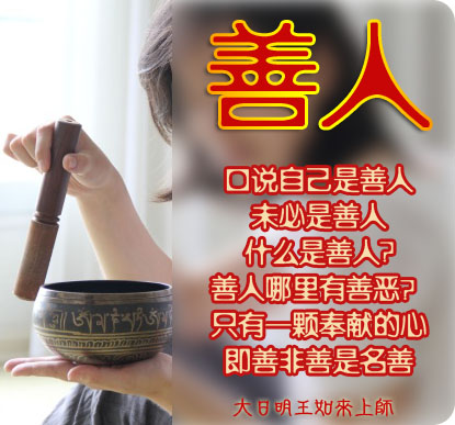 善人,口说自己是善人,未必是善人。什么是善人?善人哪里有善恶?只有一颗奉献的心。 即善非善,是名善。