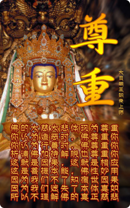金刚赤金恭敬顶礼具恩圣尊南无仁波切大日如来王尊佛上师本尊空行护法善神们!喇嘛钦诺!无上感恩上师尊佛大加持不可思议大恩大德!虔诚祈请具恩圣尊大日如来王尊佛上师本尊空行护法善神们加持!