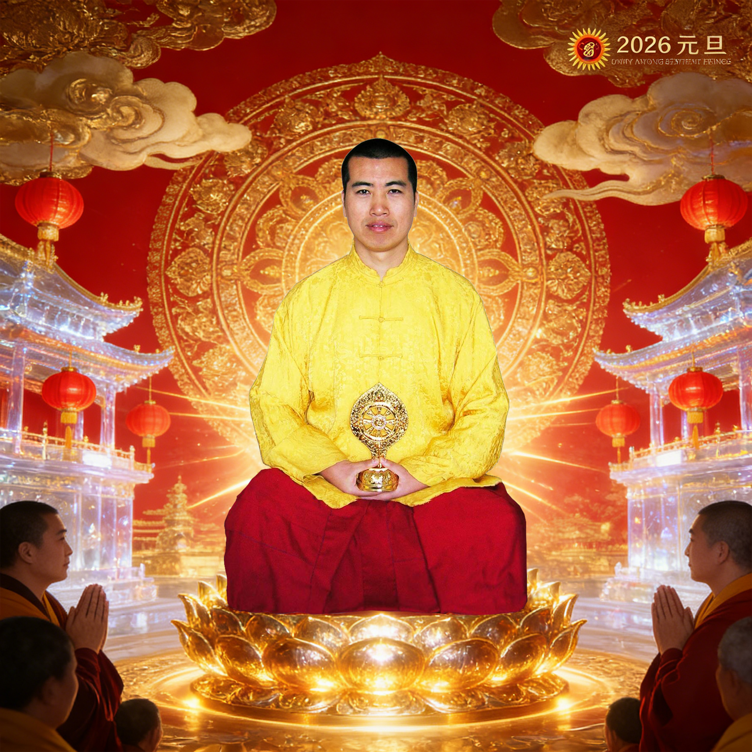 3. 金刚赤金恭敬顶礼具恩圣尊南无仁波切海空神佛祖师!喇嘛钦诺!恭祝祖师元旦快乐!喜乐吉祥!虔诚祈请祖师加持!